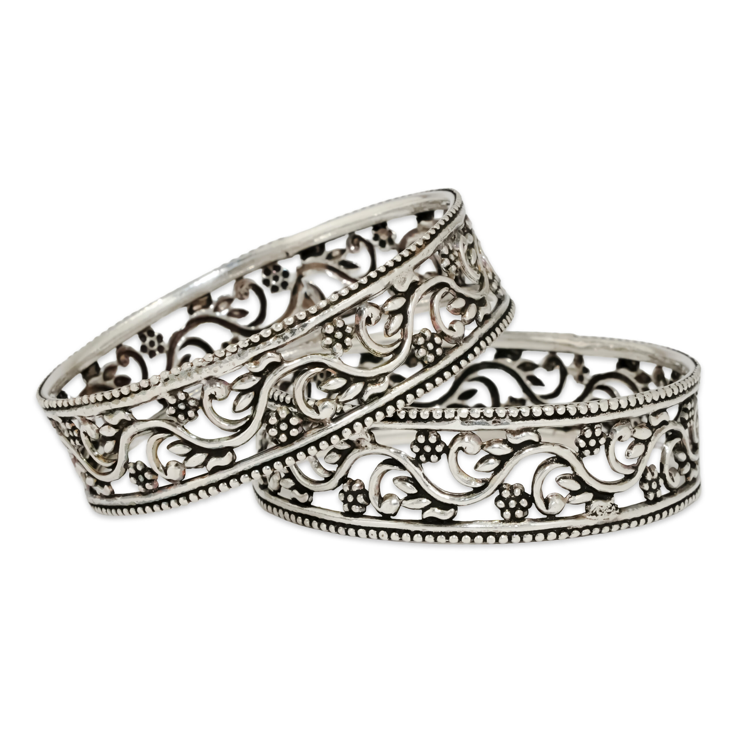Elegant Floral Filigree Silver Bangles