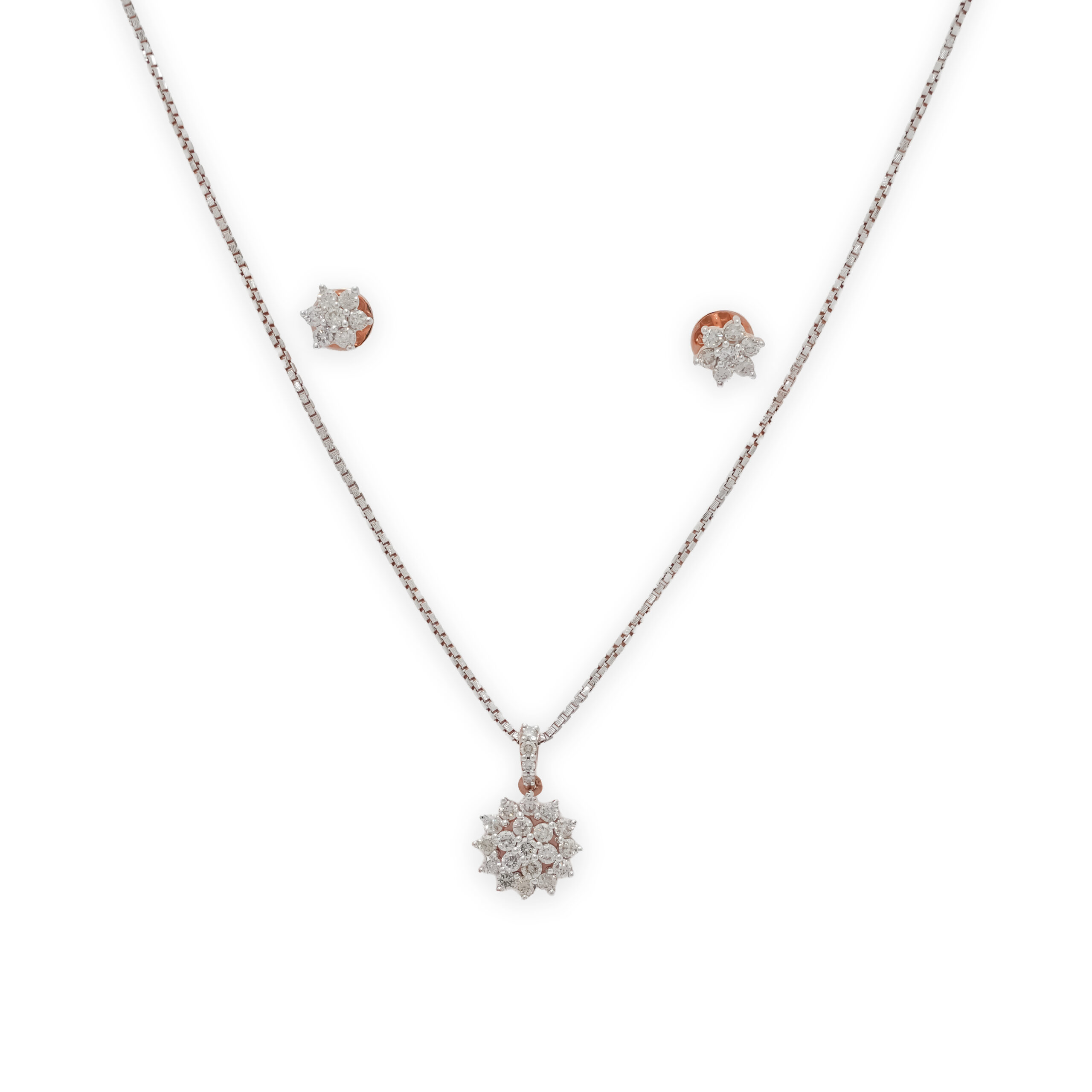 Geometric Diamond Pendant Set in Rose Gold for Daily Elegance