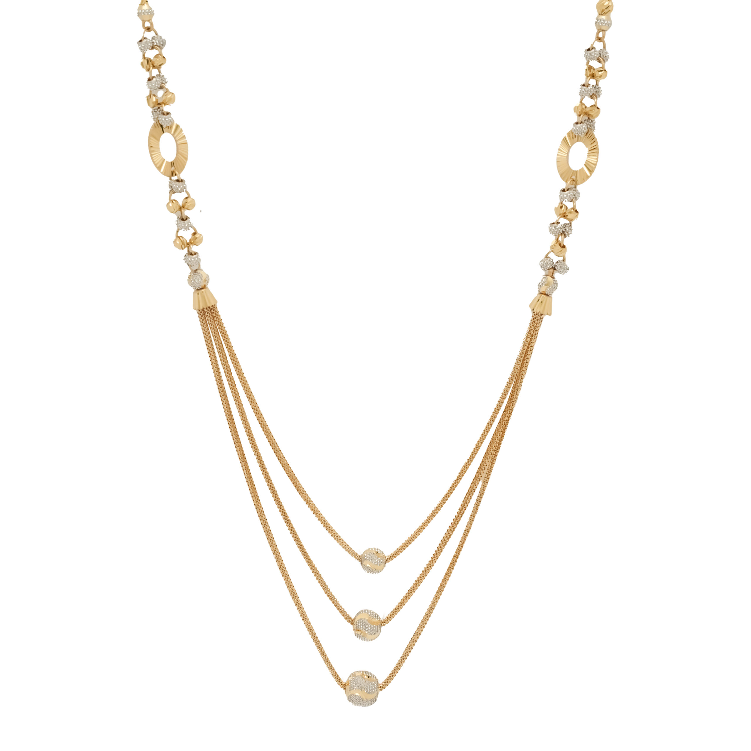 Triple Layer Gold Chain Necklace with Textured Beads