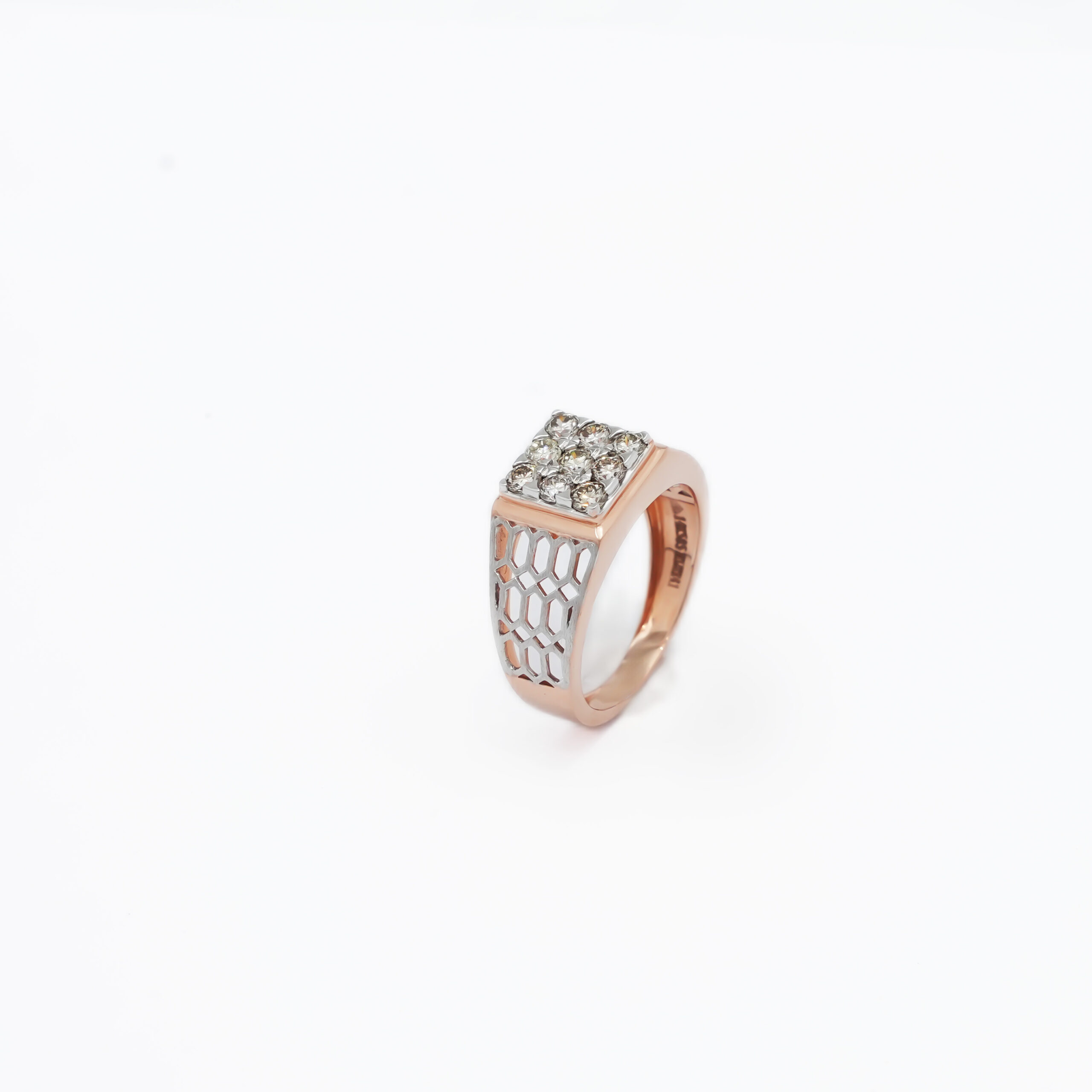 Men’s Rose Gold Diamond Ring with Honeycomb Shank